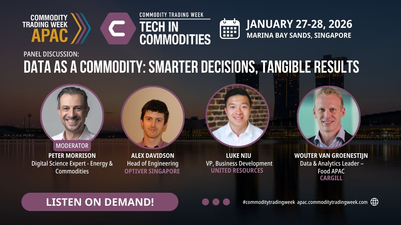 This panel examined how firms are integrating data from supply chains to trading desks to create unified commodity intelligence. Speakers explored advanced analytics, predictive modelling for supply and demand, and improved interoperability between systems to enhance forecasting, pricing, and decision-making from pre-trade to post-trade.