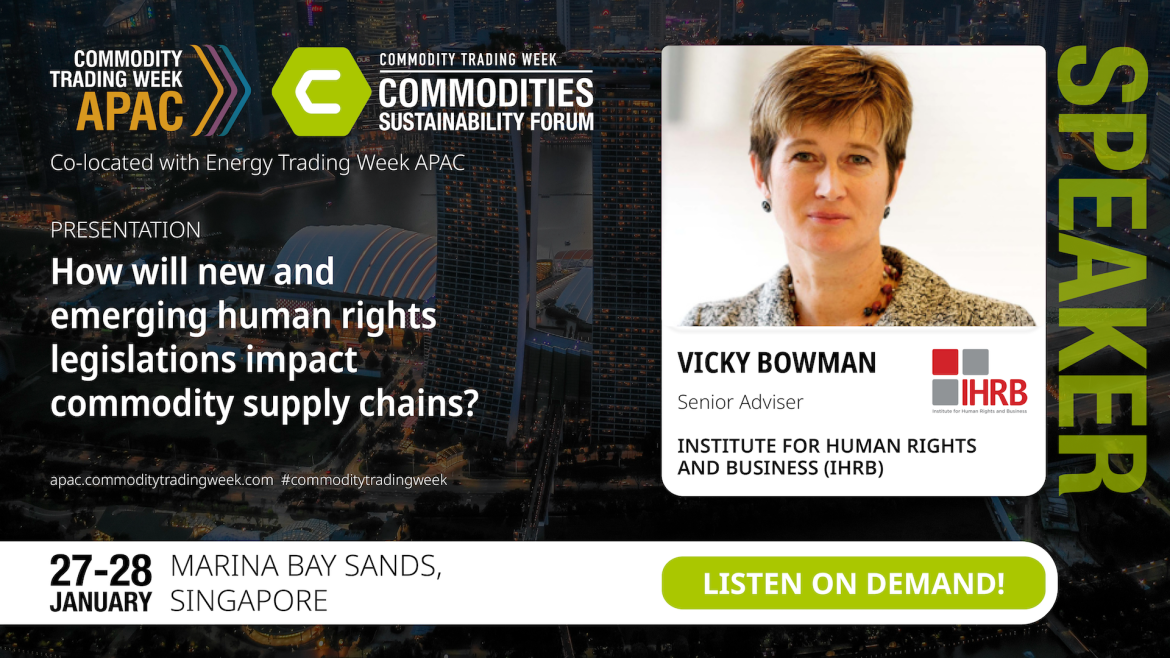 As global sustainability regulations accelerate, this presentation examined how emerging legislation on sustainability reporting, human rights due diligence, forced labour, deforestation, and climate change is reshaping commodity sourcing, transportation, and trading. Vicky Bowman unpacked what these regulations require in practice, which organisations are most affected, and the operational changes needed to remain compliant. Vicky Bowman also explored where businesses may need additional support, from data systems and supply chain visibility to legal and governance frameworks.